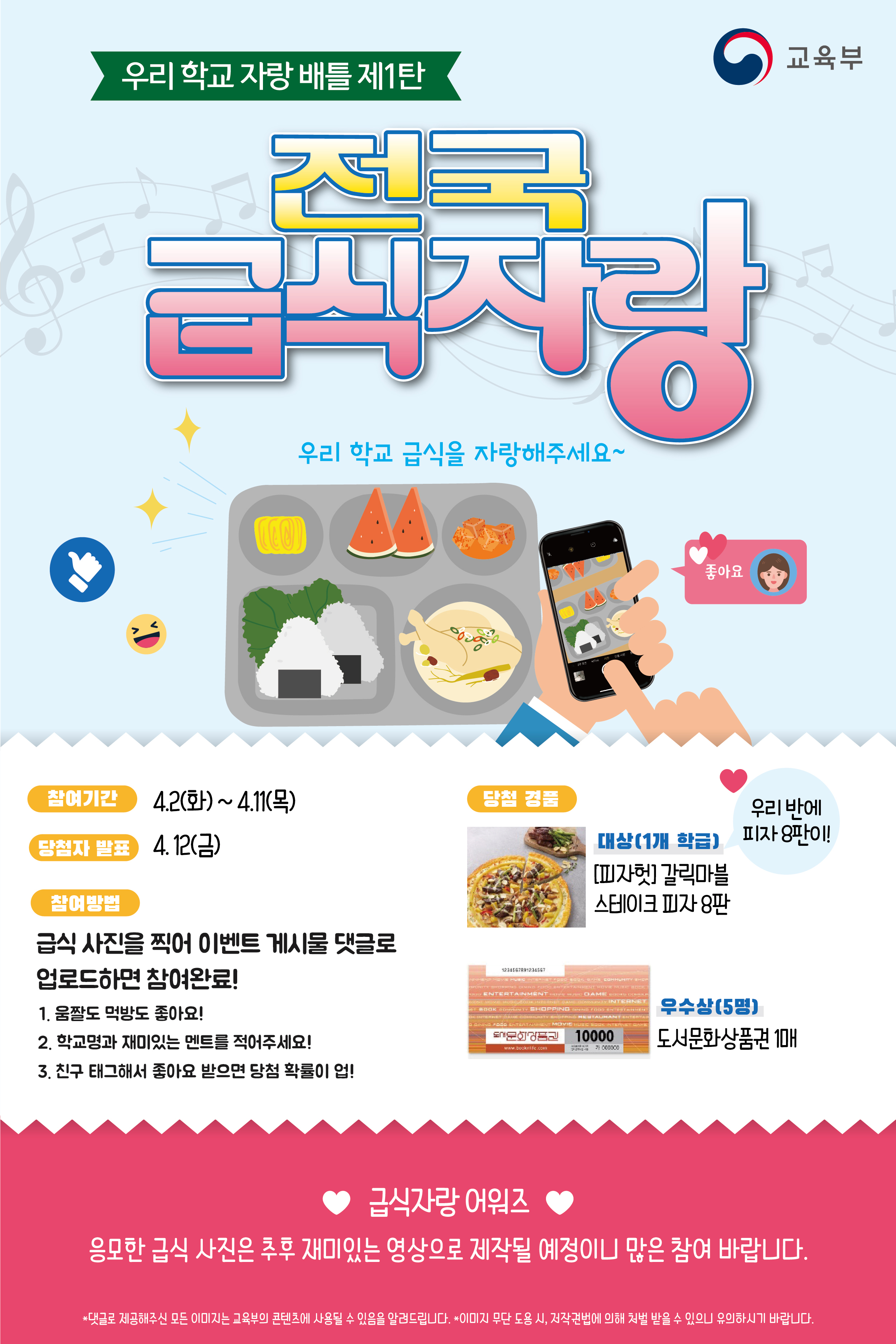(대상으로 선정된 급식의 학급 담임선생님에게 대표로 피자 8판 기프티콘이 발송됩니다)