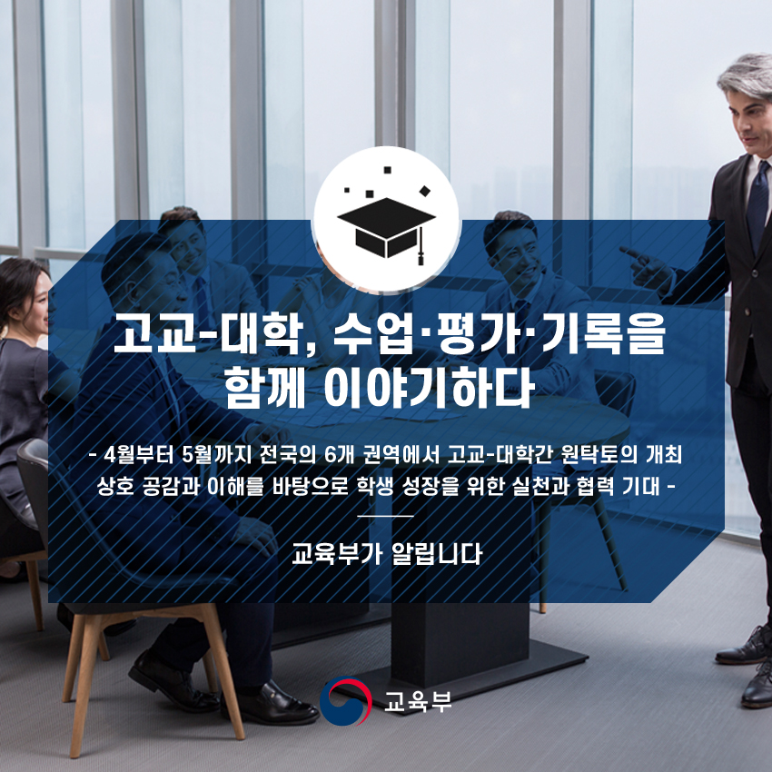 교육부는 우리 학생들이 성장할 수 있도록 고교와 대학의 협력에 더욱 힘쓰겠습니다.