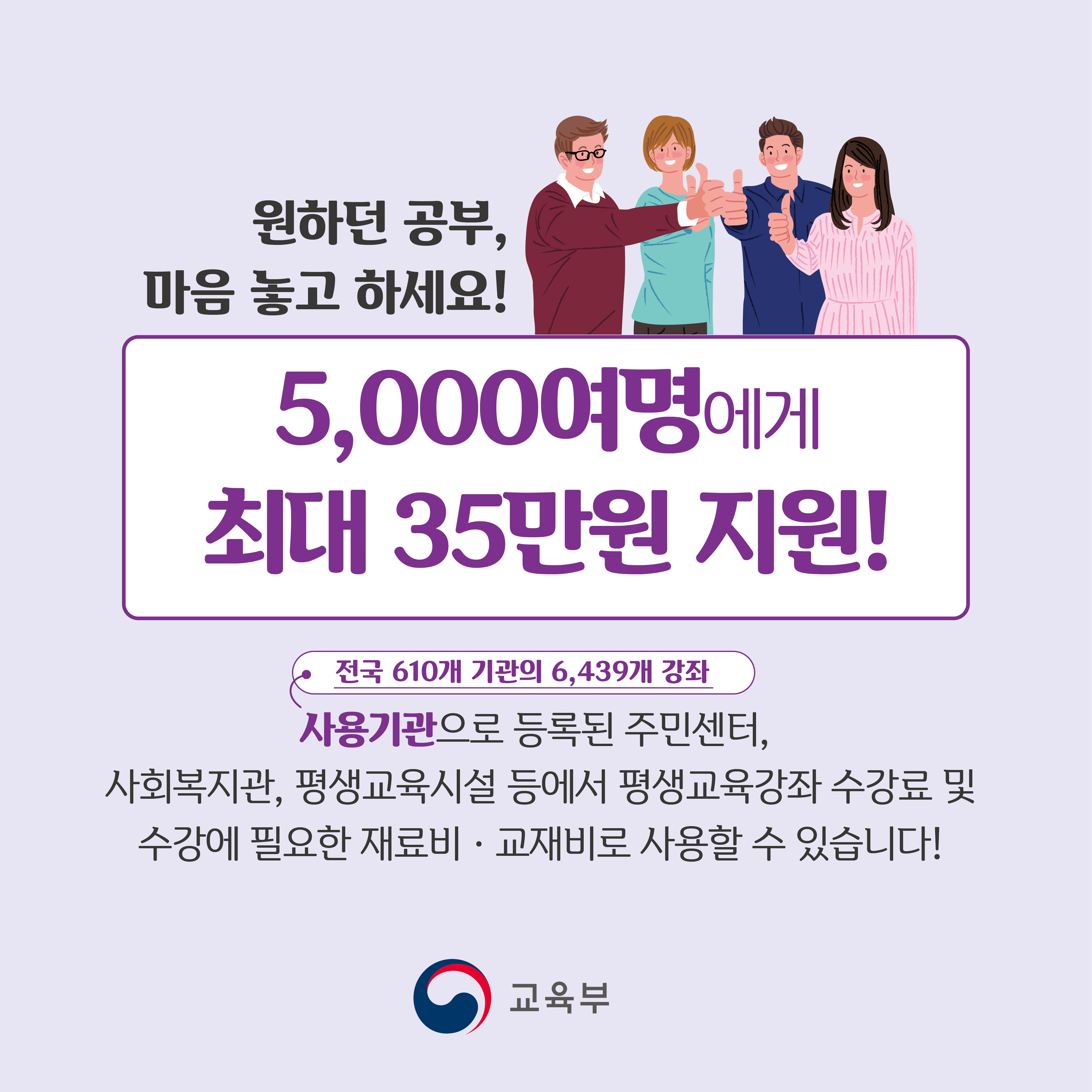 5,000여명에게 연간 최대 35만원의 교육비를 지원해드립니다!