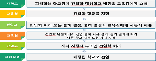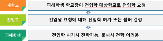 ⑦ 이때, 전입교 학교장이 교육과정 이수 등을 이유로 전입학을 불허하면 피해학생이 전입학에 어려움을 겪었으나,