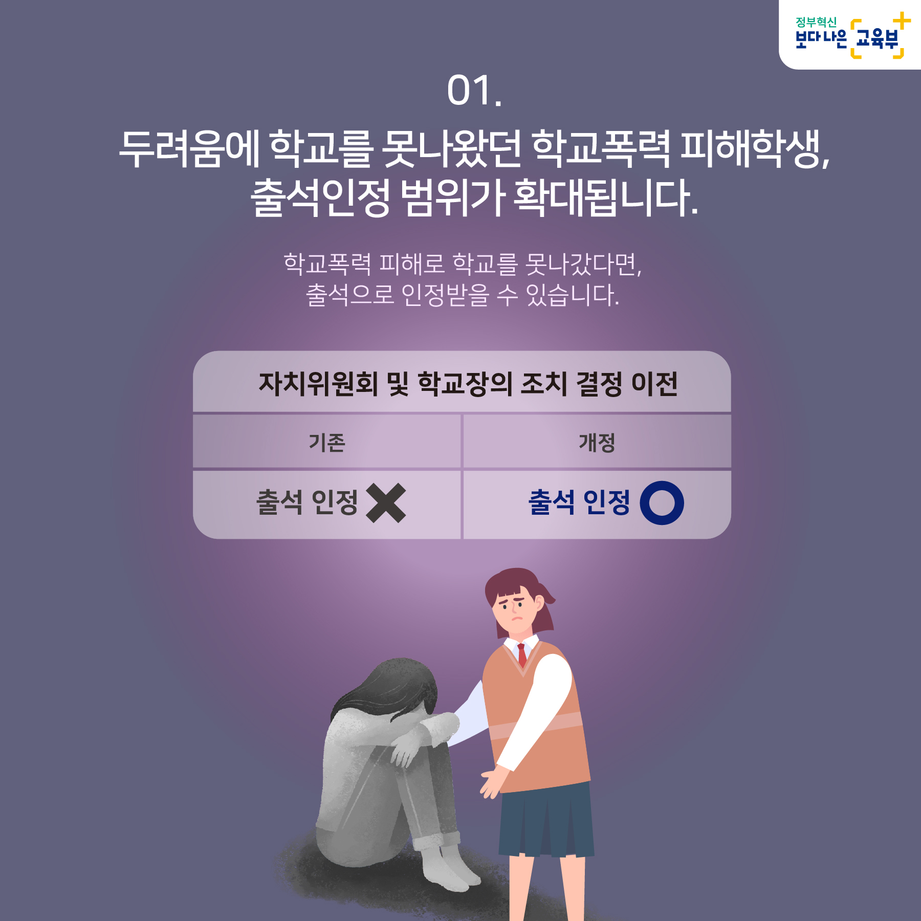 두려움에 학교를 갈 수 없었거나, 전입학을 가고 싶지만 참아야 했던