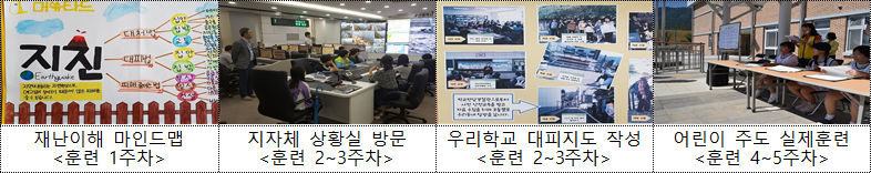 ① 어린이 재난안전훈련은 기획부터 현장훈련까지 5주차 프로그램으로 구성되며,