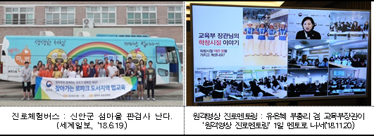 ① 올해부터 소외계층 진로체험 프로그램인 진로체험버스와 원격영상 진로멘토링을 초·중·고교 뿐만 아니라,
