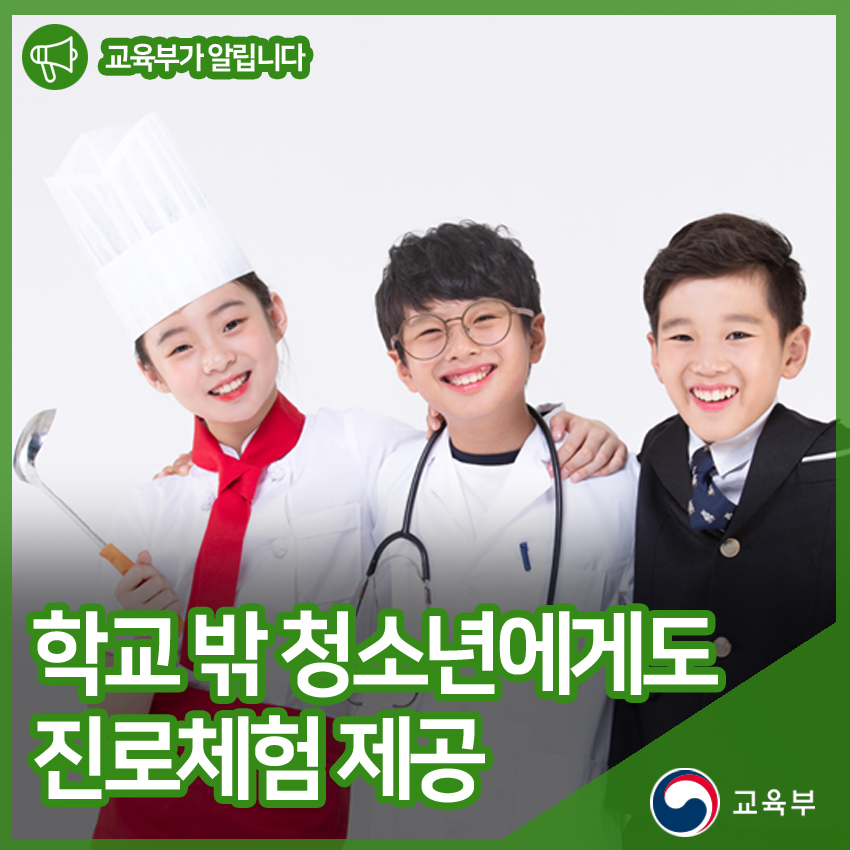 교육부는 앞으로도 모든 학생들이 다양한 교육과 진로체험을 제공받을 수 있도록 노력하겠습니다.