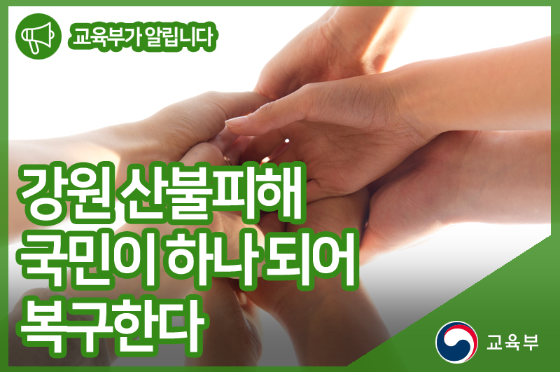 교육부는 피해학생을 대상으로 2~4분기 수업료, 본인부담금 교육비(학교운영지원비, 방과후학교 수강료 등)와 학용품 등을 지원하고, 찾아가는 심리상담 등 각종 심리상담도 실시한다. 또한 학교시설을 긴급하게 복구하기 위해, 교육시설 재난공제회와 협의하여 시설 복구비를 선지원했습니다.