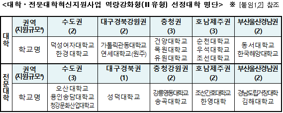 대학·전문대학혁신지원사업 ‘역량강화형’ 선정결과 발표