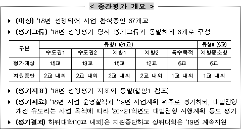 2019년 고교교육 기여대학 지원사업 중간평가 결과 발표