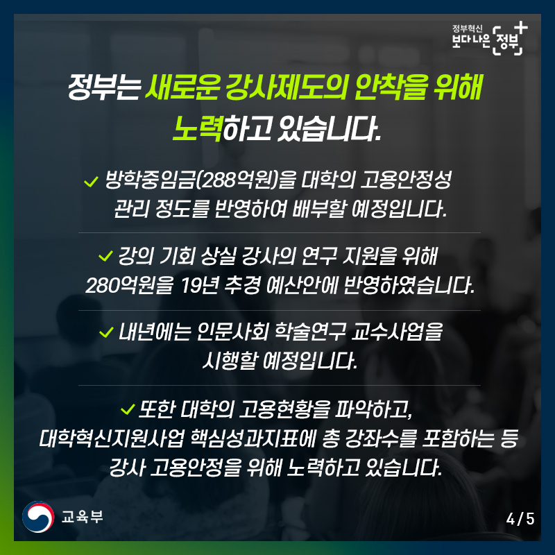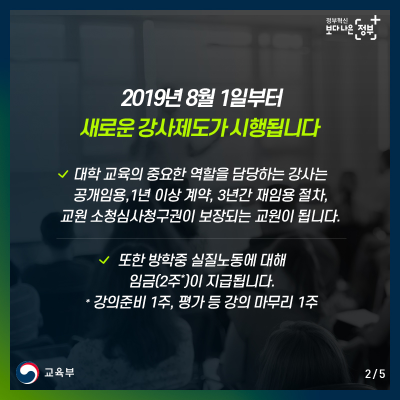 2019년 8월 1일부터 새로운 대학강사제도가 도입됩니다.