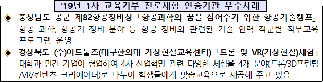 교육부는 앞으로도 자라나는 학생들에게 우수한 진로체험 프로그램을 제공할 수 있도록 노력하겠습니다.