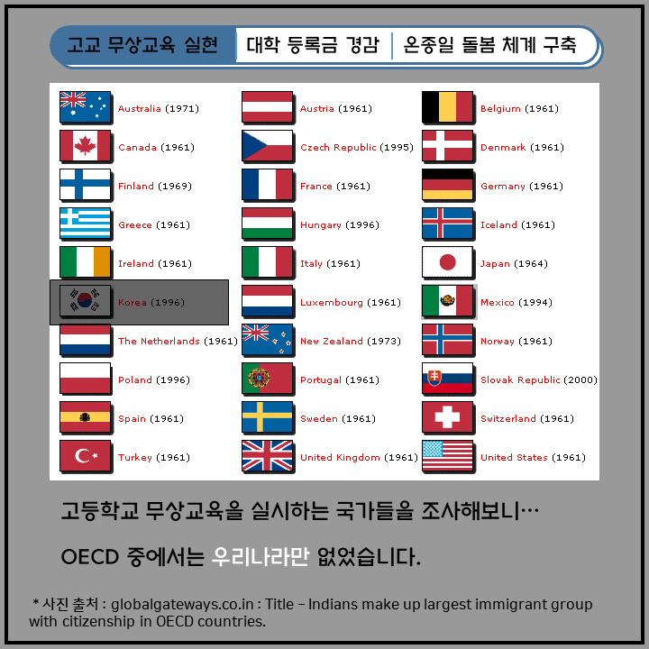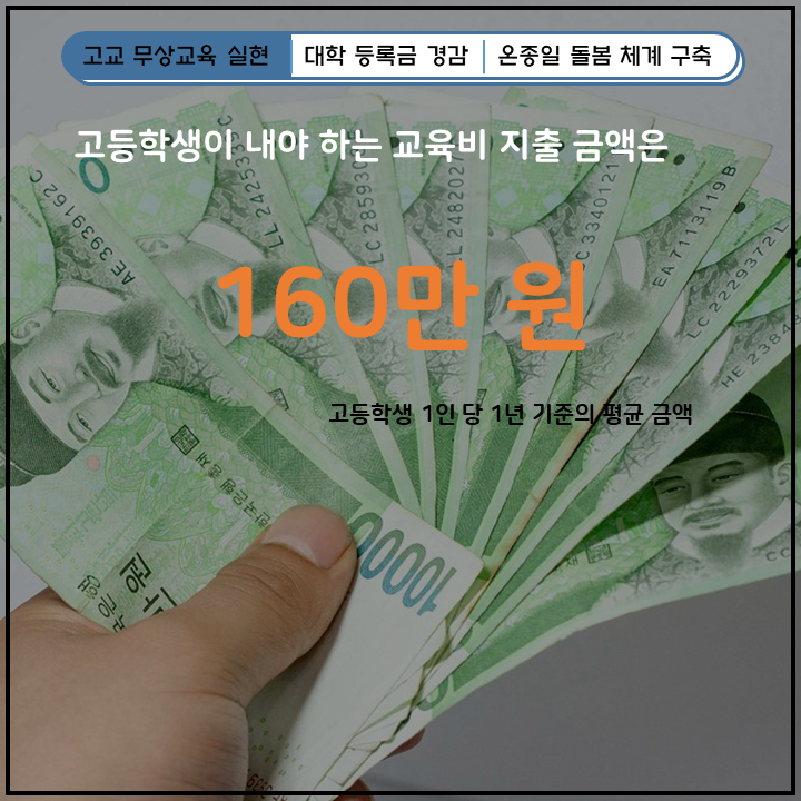 심지어 OECD에 속한 36개 국 중에서는 우리나라만 고교 무상교육을 실시하지 않았다고 하네요. 고등학교가 의무교육이 아니라고 하지만 대부분의 학생들이 고등학교와 대학교를 진학하고 있다보니 교육에 대해 굉장히 큰 돈이 소비되고 있는 셈입니다.