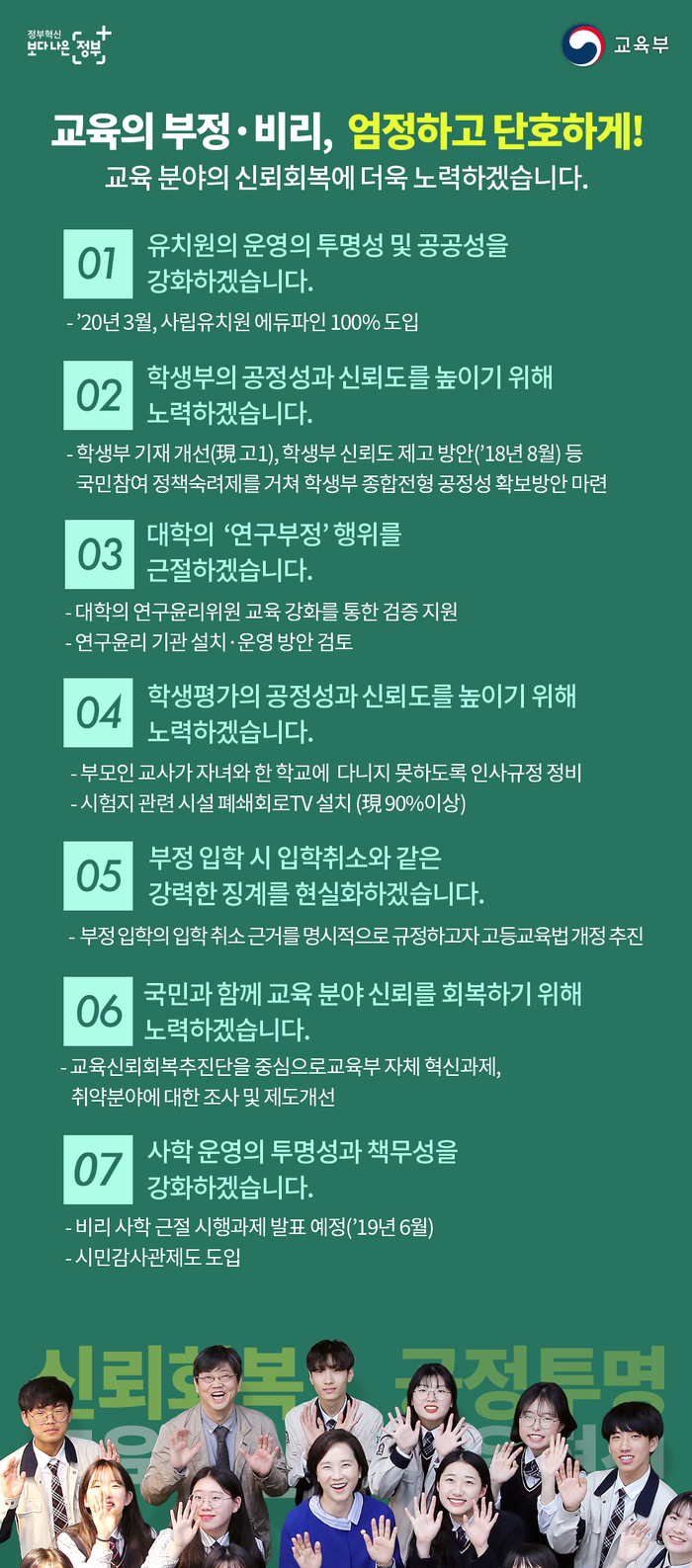 교육부는 앞으로도 교육 분야의 신뢰 회복을 위해 더욱 노력하겠습니다.