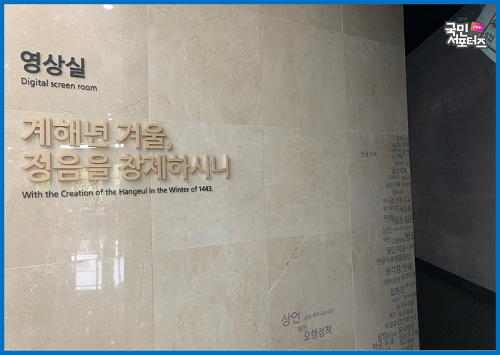 그리고 오전 10시, 11시 / 오후 2시, 3시, 4시에는 한국어 정기 해설을 무료로 진행하기 때문에, 함께 한다면 한글 박물관을 더욱 내실 있게 즐길 수 있습니다. 또한 상시 전시회 들어가시기 전, 입구에 있는 영상실에서 한글을 만든 세종대왕의 이야기가 담긴 영상을 먼저 보시고 들어가면 전시회를 보실 때 더 수월하게 이해 하실 수 있습니다.
