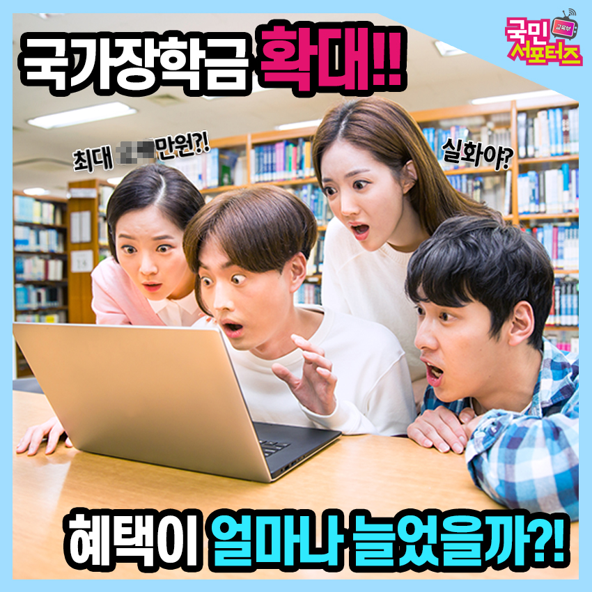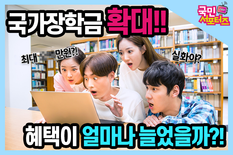 처음에는 많은 사람들에게 의구심을 사기도 하였던 국가장학금 확대 공약이었습니다. 반값등록금이 실현되는 것이 비현실적이라고 생각하셨던 분들도 많았을 것이라고 생각되는데요. 대통령 임기 2년차, 아직은 시작단계라고 할 수 있기에 국가장학금을 수혜받는 것에 대해 크게 체감할 수 없을지도 모릅니다. 하지만 교육비 절감을 위해 교육부가 계속해서 노력하고 있기 때문에 더 많은 학생들이 등록금의 걱정에서 자유로운 날이 올 것이라 기대됩니다!
