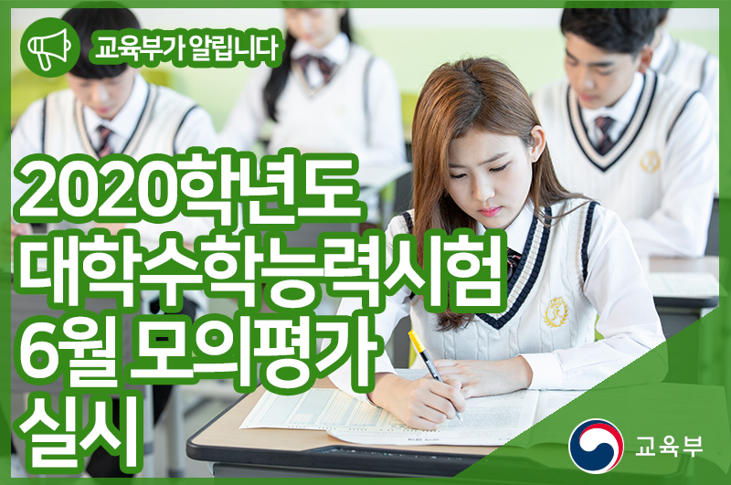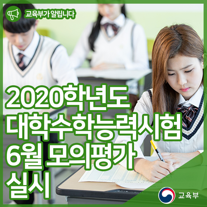 한국교육과정평가원(원장 성기선)은 2020학년도 대학수학능력시험 6월 모의평가를 6월 4일(화) 오전 8시 40분부터 전국 2,053개 고등학교(교육청 포함)와 425개 지정학원에서 동시에 실시한다고 발표했습니다.