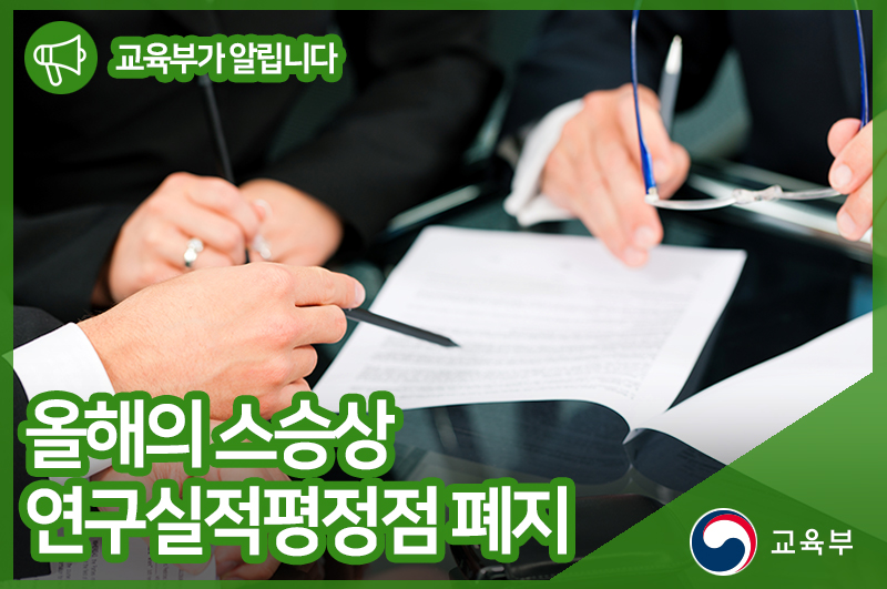 교육부가 올해의 스승상에 연구실적평정점을 부여하지 않기로 한 것은 인사상 특전을 폐지한다는 의지를 반영한 것입니다. 한편, 교육부는 6월 중 시‧도교육청 인사담당자 협의회 등을 개최해 교육현장의 의견을 수렴한 후 교육공무원 승진규정과 연구대회 관리에 관한 훈령 개정을 추진할 계획입니다.