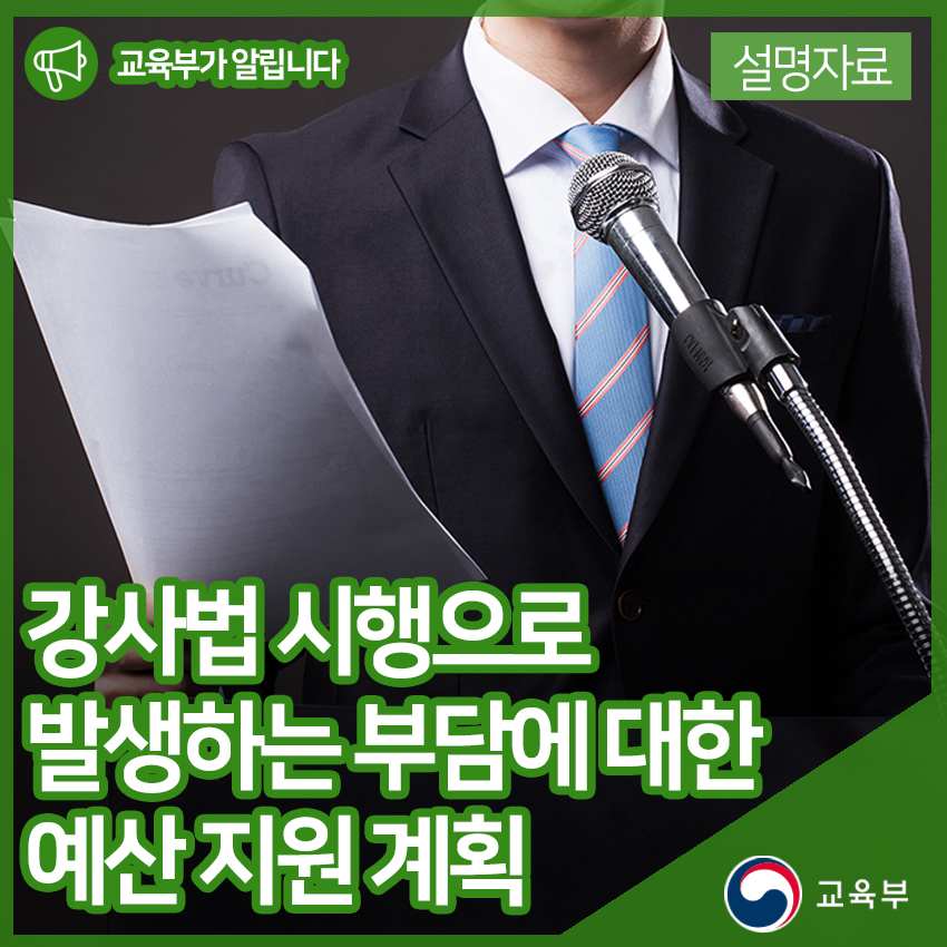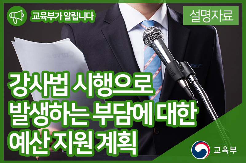 우리 부는 앞으로도 강사법에 따라 발생하는 대학 재정 부담을 경감하기 위해 대학 측과 함께 노력할 것이며, 관련 예산을 안정적으로 확보하기 위해 재정당국과 지속적으로 협의해 나갈 예정입니다.