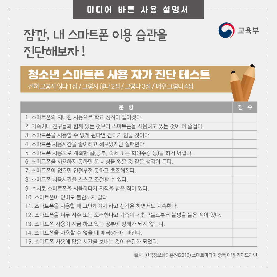 스마트폰 사용 자가 진단부터 스마트폰 바른 사용 10계명까지!