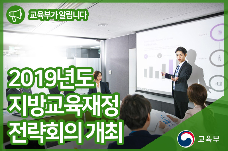교육부(부총리 겸 교육부장관 유은혜)와 전국시도교육감협의회(회장 김승환)는 6월 12일(수) 세종컨벤션센터에서「2019년도 지방교육재정전략회의」를 공동으로 개최합니다. 이번 회의는 교육부와 시·도교육청 등이 한자리에 모여 지방교육 재정의 효과적 운영방안과 향후 재정투자 방향, 재정 관련 쟁점 등을 논의하는 자리로, 작년에 이어 올해 두 번째로 이루어졌습니다.