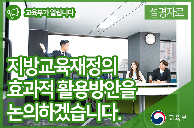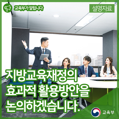 교육부는 관계부처, 시‧도교육청, 전문가 등과 함께 지방교육재정의 효과적 활용방안을 지속적으로 논의하겠습니다. 우선, 작년에 이어 올해 두 번째로 개최되는 지방교육재정전략회의(6.12)를 통해, 법령상 지방교육재정 편성권한을 가진 교육청과 교육부 등이 함께 효과적 교육재정투자방향을 고민할 것입니다.