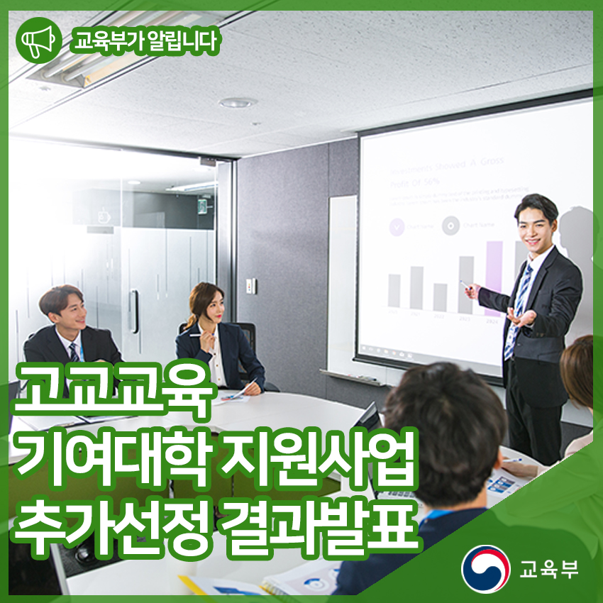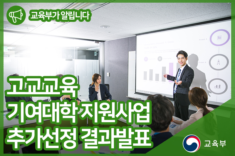 교육부는 고교교육 기여대학 지원사업을 통해 대입전형의 공정성과 투명성 제고, 대입전형 단순화 등 대학입시에 대한 국민적 요구와 기대에 부응할 수 있도록 지속적으로 노력할 계획입니다.