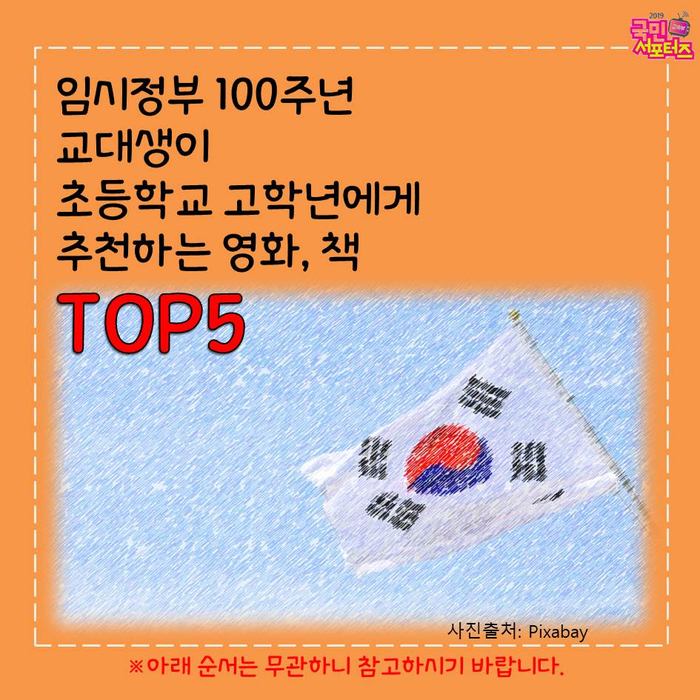 임시정부 100주년 교대생이 초등학교 고학년에게 추천하는 영화와 책 Top 5! 본문
