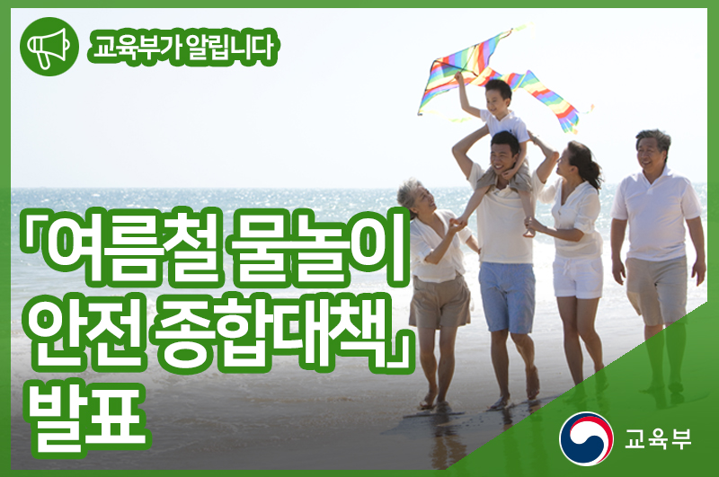 정부는 본격적인 여름철 물놀이 시기를 맞아 물놀이 사고 및 인명피해 최소화를 위한 ‘여름철 물놀이 안전 종합대책’을 발표했습니다. 이번 종합대책은 그 간 강, 계곡, 해수욕장 등 물놀이 안전관리가 소관 부처별로 추진되었던 것을 관계 부처가 합동으로 추진함으로써 대국민 홍보 및 교육, 안전점검 등의 물놀이 안전대책을 효율적으로 추진하기 위하여 마련되었습니다.