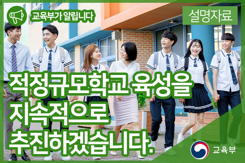 학령인구 감소에 따라 지역 여건을 고려하여 교육과정 운영상 애로사항(복식학급 운영, 순회교사․상치교사 배치)을 해소하고 양질의 교육환경을 조성하기 위해 2009년부터 ‘적정규모학교 육성*’ 정책을 추진하고 있습니다.