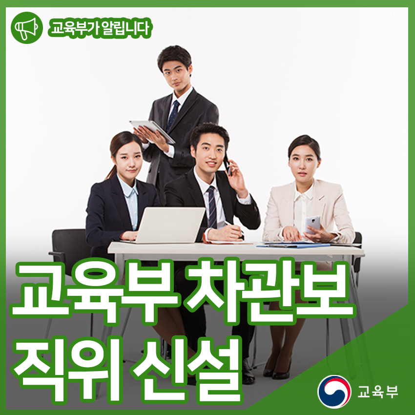 교육부(장관 유은혜)와 행정안전부(장관 진영)는 사회부총리의 사회정책 조정 기능을 강화하기 위해 교육부에 차관보를 신설하고 실무인력을 증원하는 내용으로 「교육부와 그 소속기관 직제」 개정령안을 18일 국무회의에서 의결했다고 밝혔습니다. 차관보 직위 신설은 교육․사회 및 문화 분야 등의 정책을 조정하고 협력을 유도하는 사회부총리 역할을 실질적으로 뒷받침하여, 문재인 정부의 국정운영 목표인 ‘혁신적 포용국가’를 차질없이 추진하기 위한 것입니다.