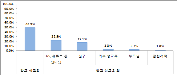 이 조사에서는 학생들이 성에 대한 정보를 어디서 얻는지 조사했지만 51.1% 학생들이 학교 성교육 외의 SNS, 유튜브, 친구 등의 경로에서 얻는 걸 알 수 있었다.