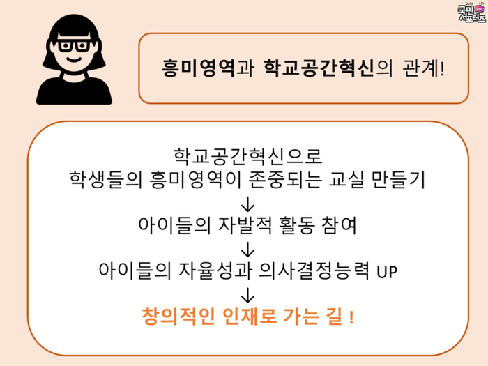 그렇다면 흥미영역과 학교 공간 혁신은 어떤 연관성이 있나요?