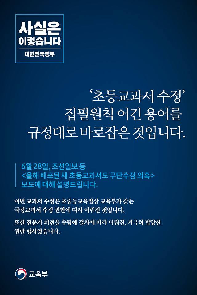 교육부의 초등교과서 수정은 ‘당연한 권한 행사’입니다. 본문