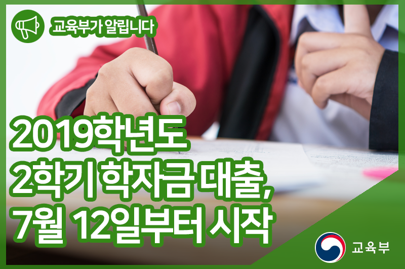 교육부(부총리 겸 교육부장관 유은혜)와 한국장학재단(이사장 이정우)은 ’19학년도 2학기 학자금 대출 신청·접수를 7월 12일(금)부터 시작한다.