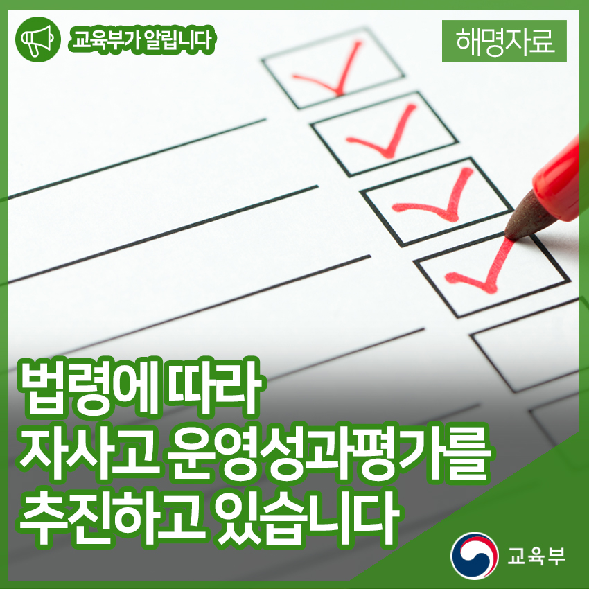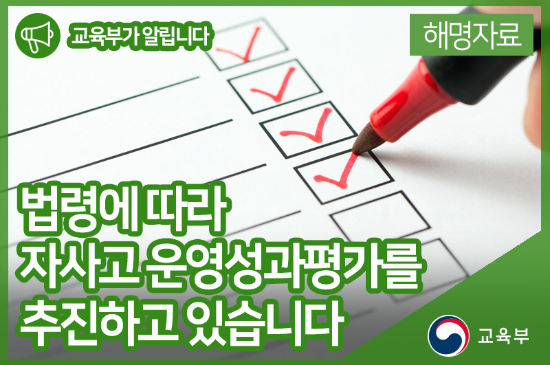 교육부와 시도교육청은 법령에 따라 자사고 운영성과평가를 추진하고 있습니다.