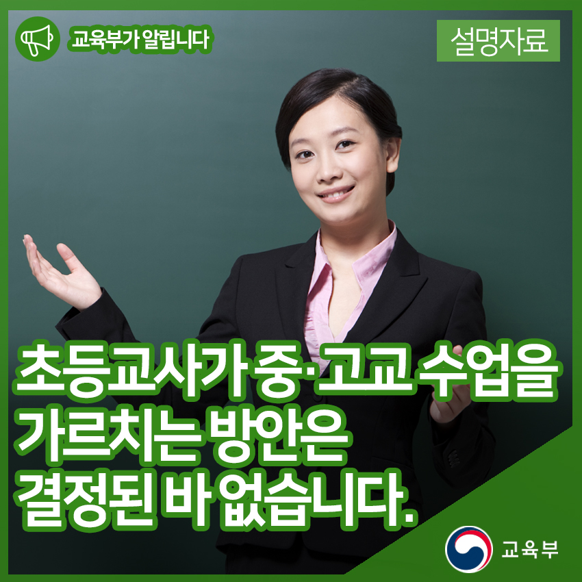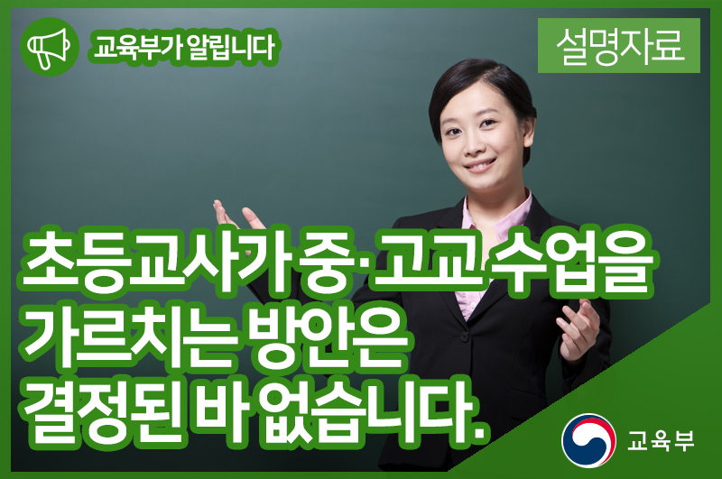 초등교사가 중·고교 수업을 가르치는 방안은 결정된 바 없음을 알려드립니다. 본문