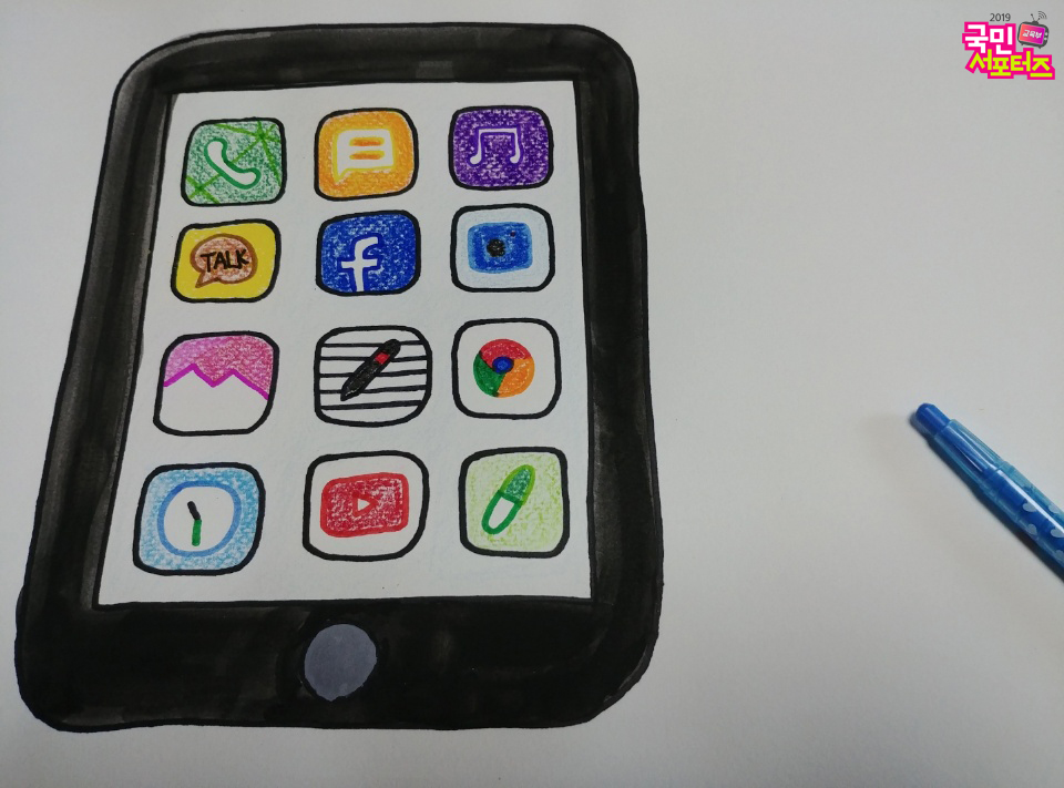 조금 삐뚤빼뚤하기는 하지만, 그래도 나름 휴대전화를 잘 표현한 것 같지 않나요?