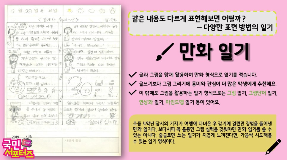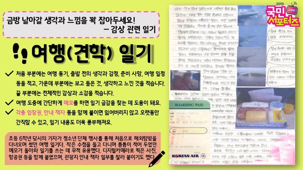 제가 실제 초등학생 때 작성했던 일기들을 바탕으로, 일기를 쓰는 다양한 방법을 여러분에게도 소개하고자 합니다!