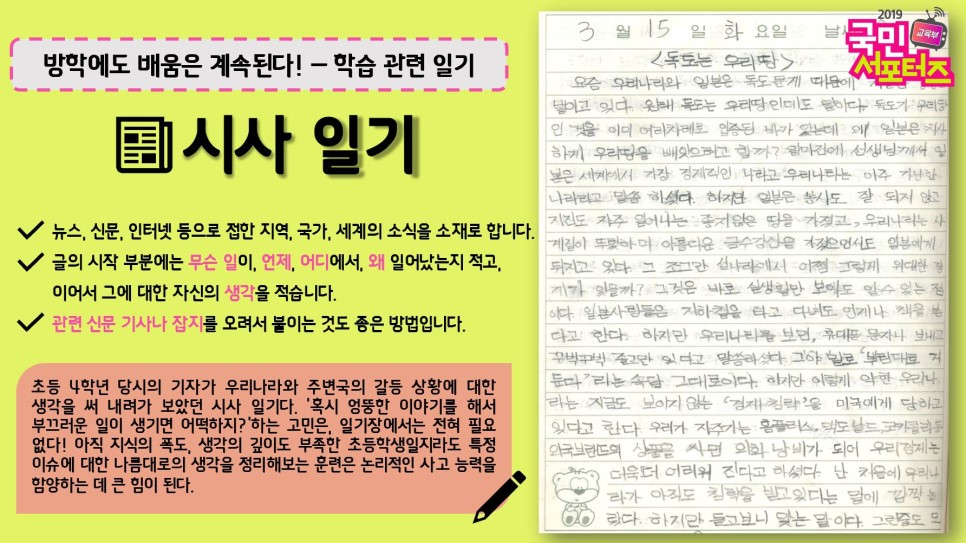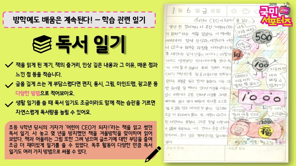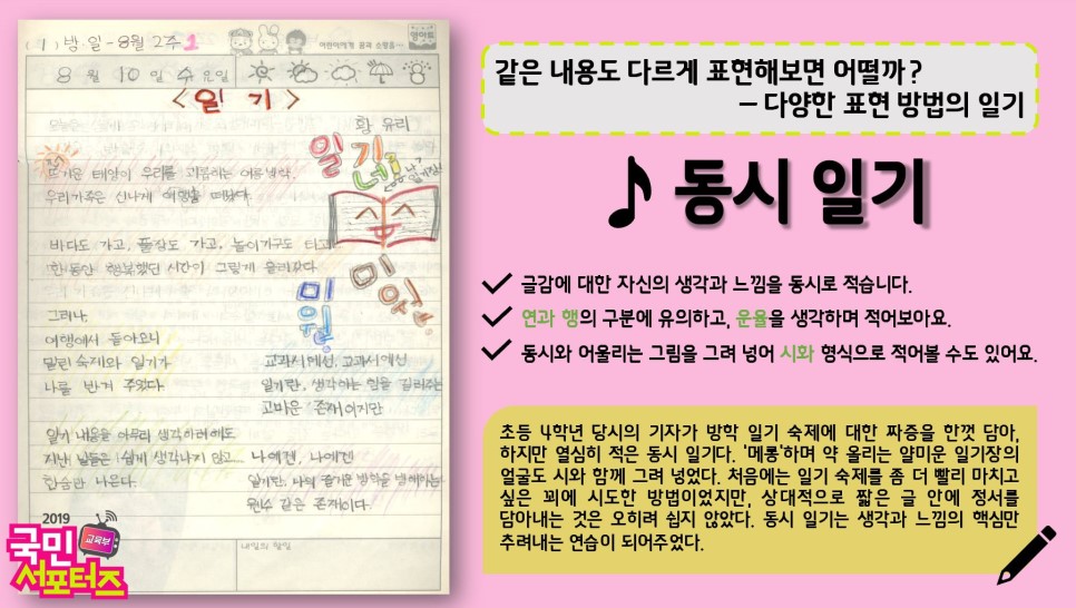 여러분도 즐거운 여름 방학의 하루하루를 꼭 일기에 담아보세요. 바로 오늘부터요!