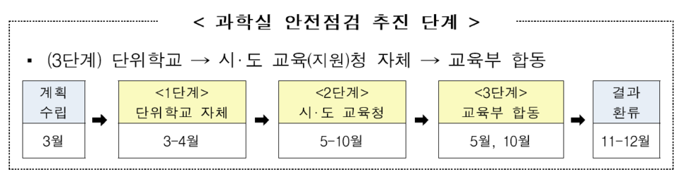 교육부는 초․중․고 과학실 안전을 위한 다각적 조치를 계획대로 시행하고 있으며,