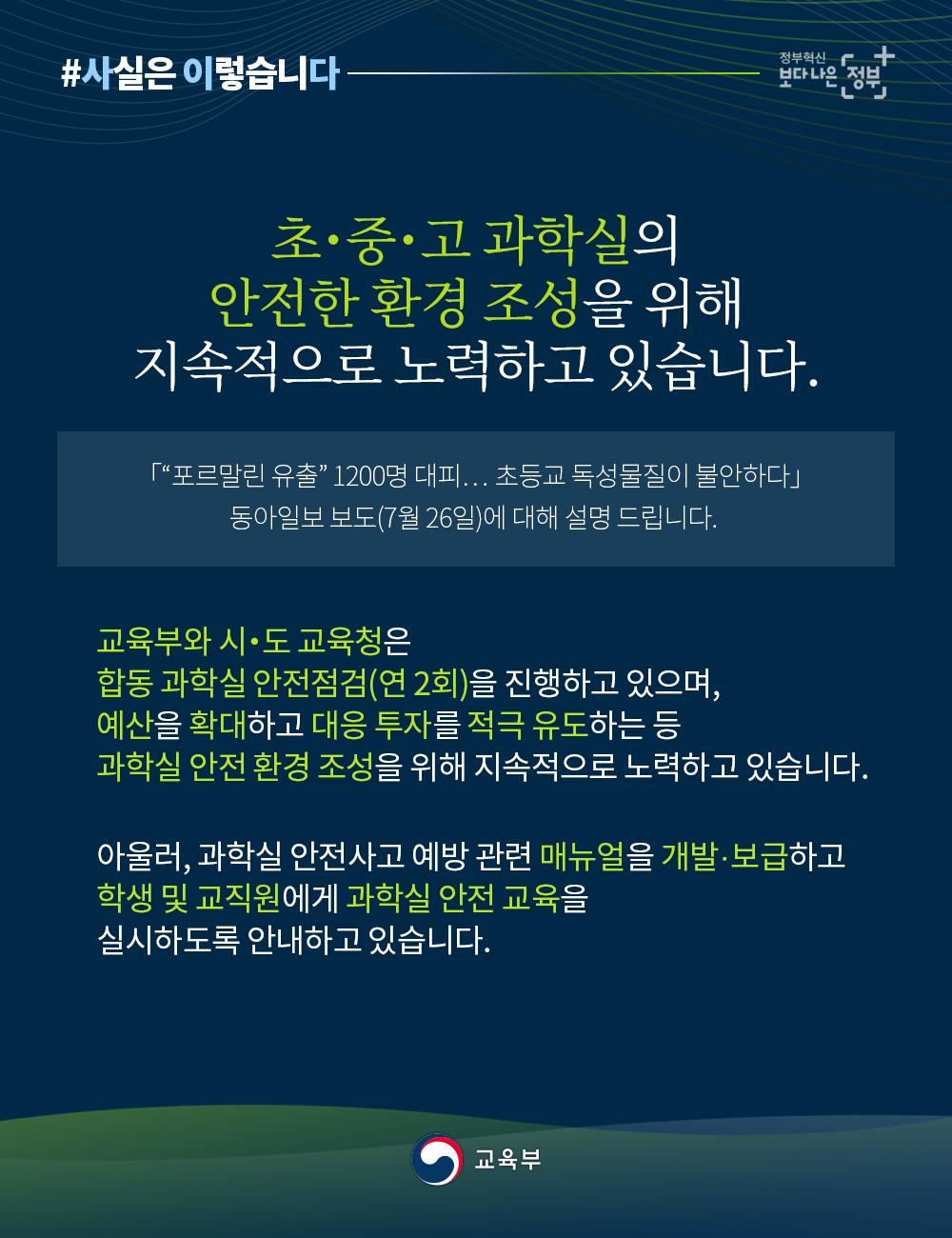 [초중고 과학실의 안전한 환경 조성을 위해 노력하고 있습니다] 본문