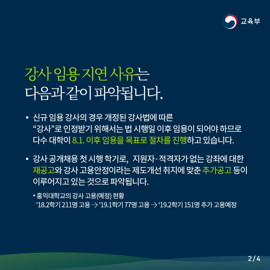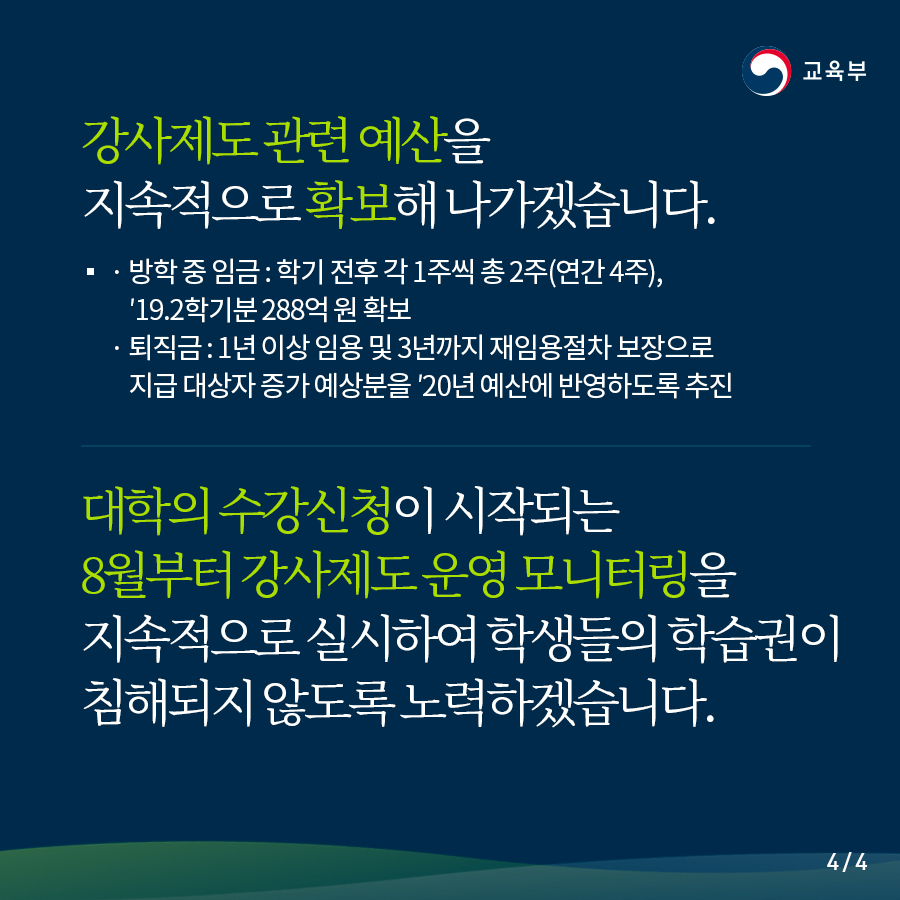 학생 학습권이 침해받지 않도록 새로운 강사제도 현장 안착을 위해 적극 노력하겠습니다 2019년 8월 1일 ...