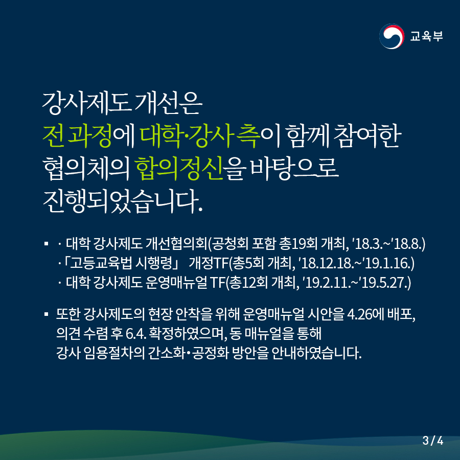 - 강사제도 개선 전 과정에 대학·강사 측 참여, 합의정신을 바탕으로 진행