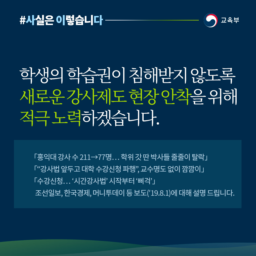학생 학습권이 침해받지 않도록 새로운 강사제도 현장 안착을 위해 적극 노력하겠습니다