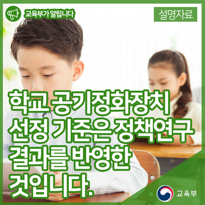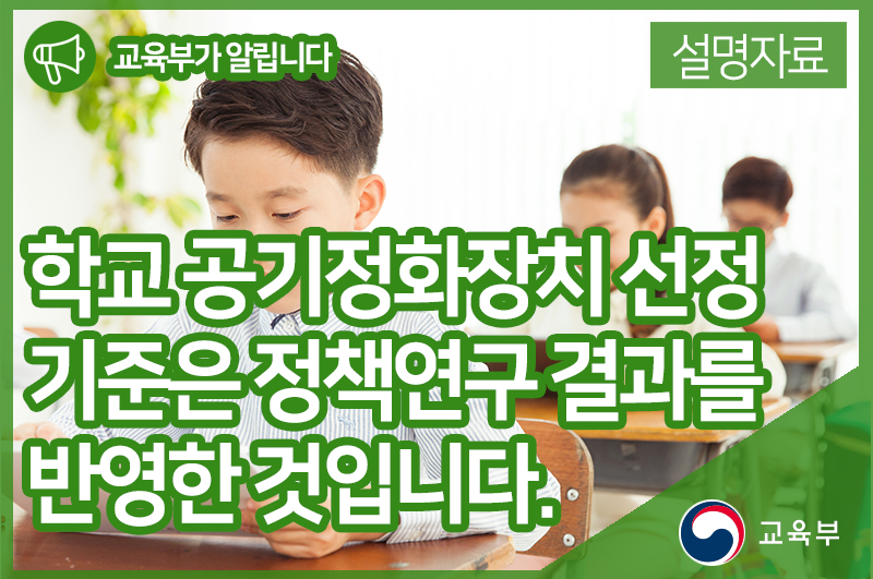 학교 공기정화장치 선정기준은 교실 공간의 특성과 한국실내환경학회의 정책연구 결과를 반영한 것입니다. 본문
