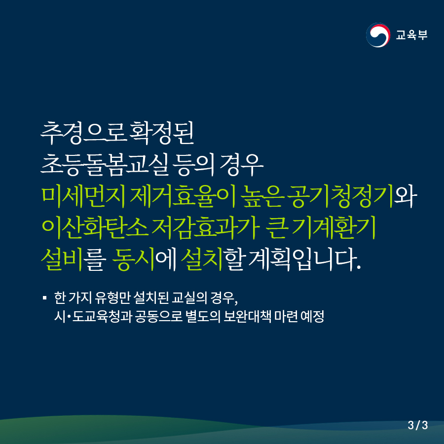 추경으로 확정된 초등돌봄교실 등의 경우, 공기청정기와 기계환 설비를