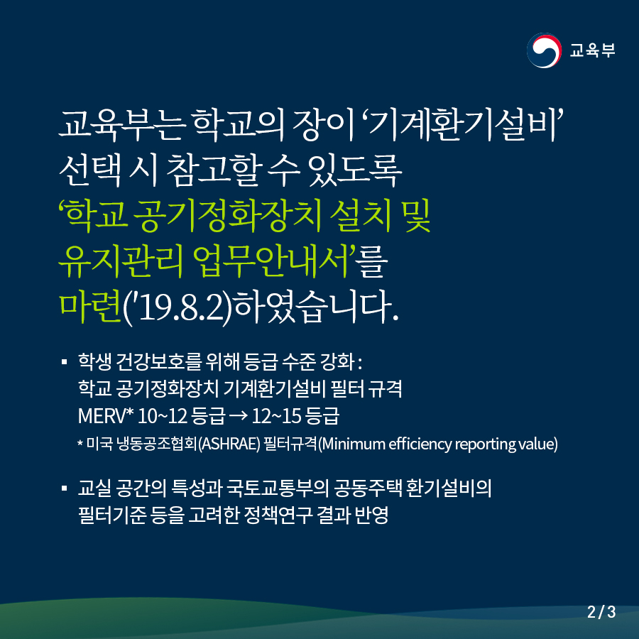 학교 공기정화장치 설치 시, 학교의 장이 참고할 수 있도록