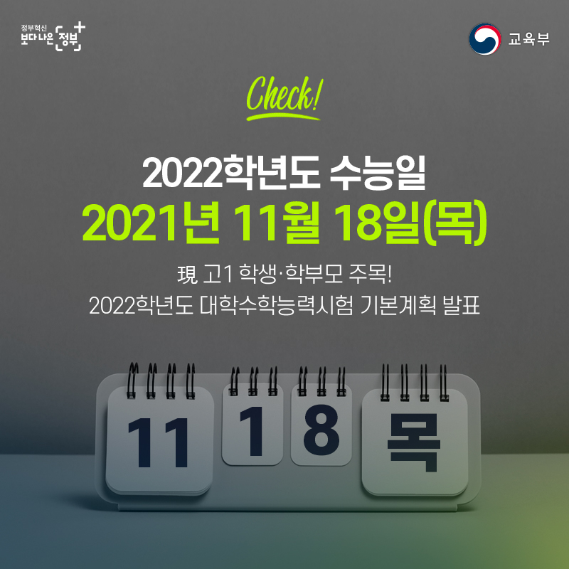 ☑ 2022학년도 수능은 11월 18일(목) 시행