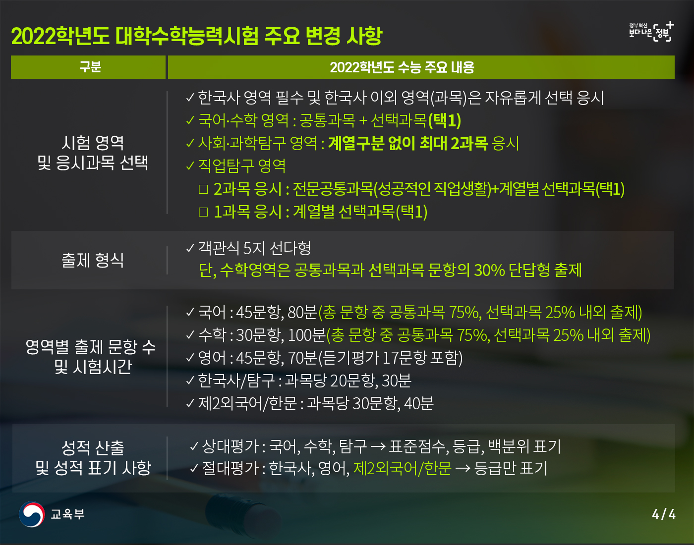2022학년도 대학수학능력시험 기본계획 발표- 국어, 수학 영역 공통 · 선택과목 간 문항 비율 75 : 25 내외...
