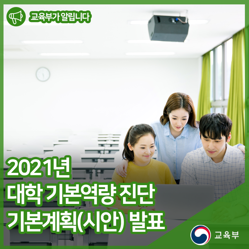 교육부(부총리 겸 교육부장관 유은혜)는 8월 14일(수)에 「2021년 대학 기본역량 진단 기본계획(시안)」을 발표하였다.