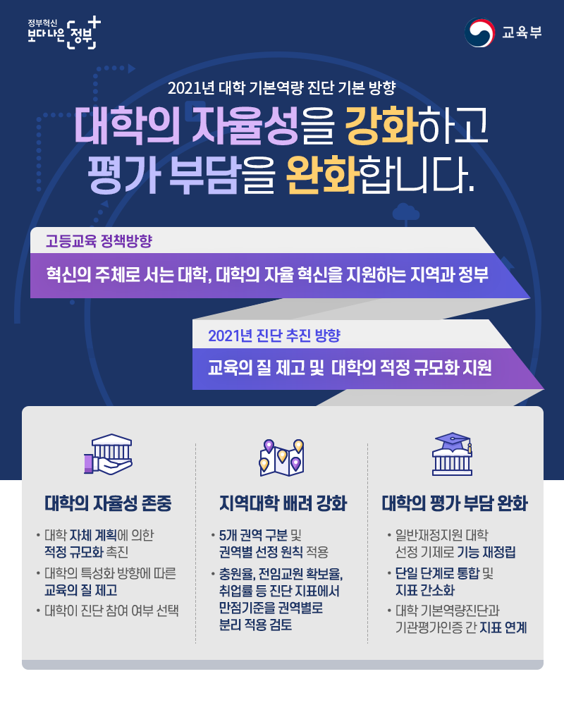 대학의 자율성을 강화하고 평가부담을 완화합니다.