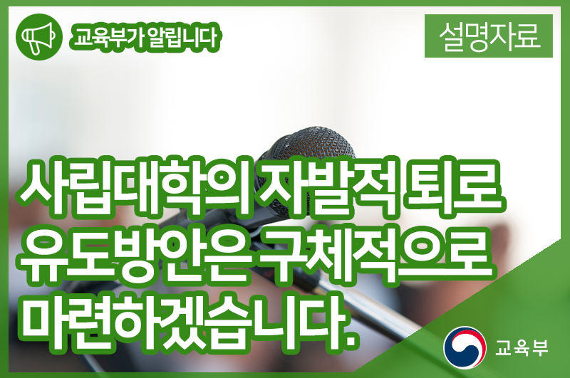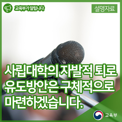 사립대학의 자발적 퇴로 유도 방안은 향후 의견수렴을 거쳐 구체적으로 마련하도록 하겠습니다. 본문